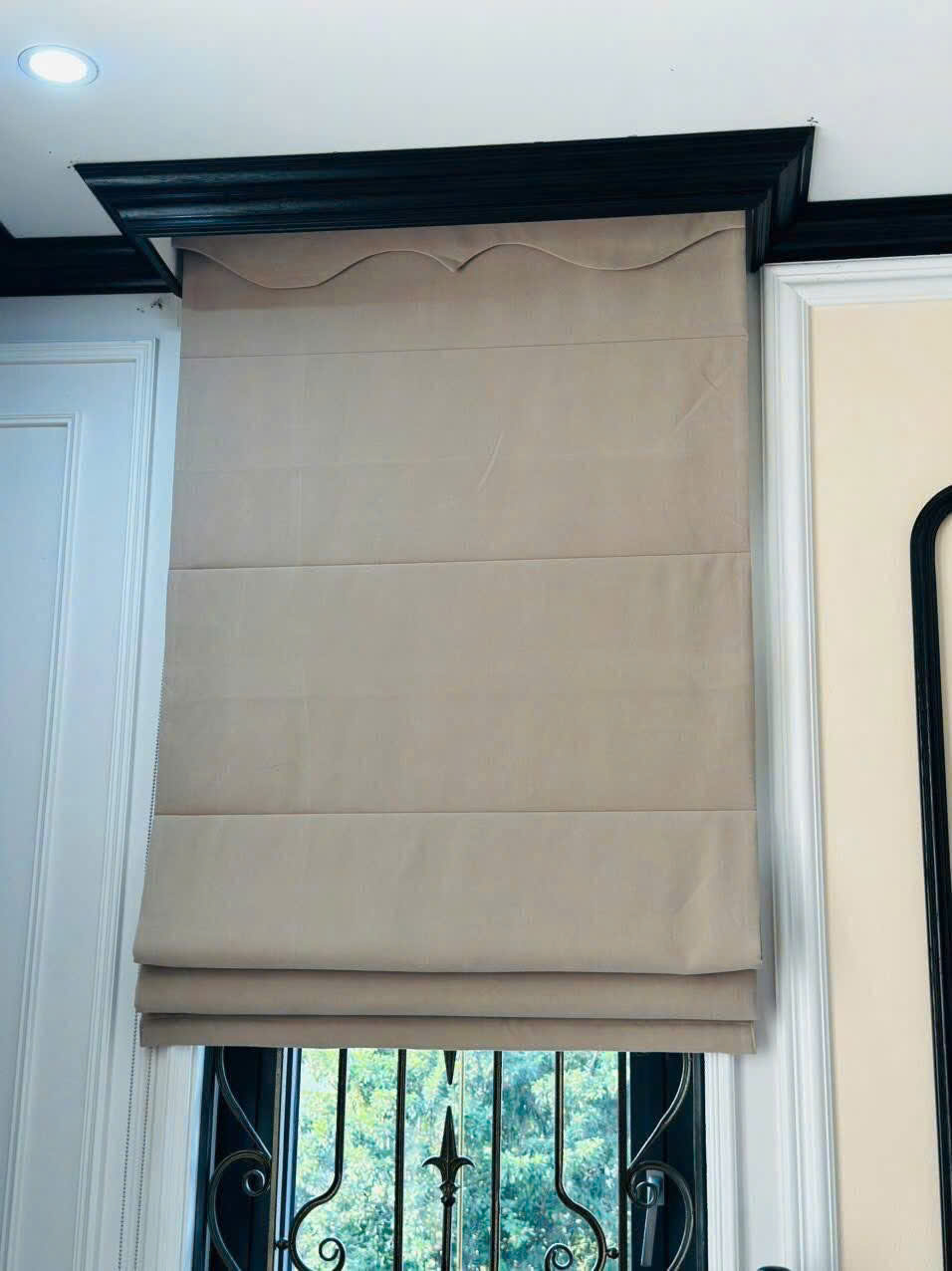 [Hình ảnh thực tế của rèm Roman yếm sóng cổ điển trong không gian nội thất tân cổ điển]